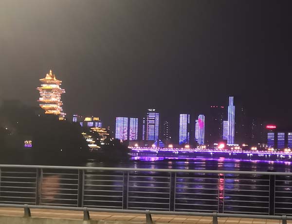 妈妈说,比她大学刚毕业那时候见过的那次齐腰深的水还厉害。上个照片看看,水都是黄黄的。不过夜景是真的好看!