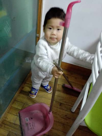 最近一两个月,小灿宝贝喜欢上了扫地。