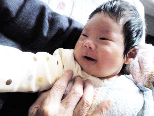 小朋友打完预防针,回家“哦哦”地和姥爷聊天,非常开心。